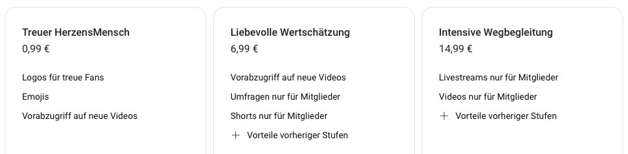 Hier ist die Übersicht für meine Youtube-Mitgliedschaft: